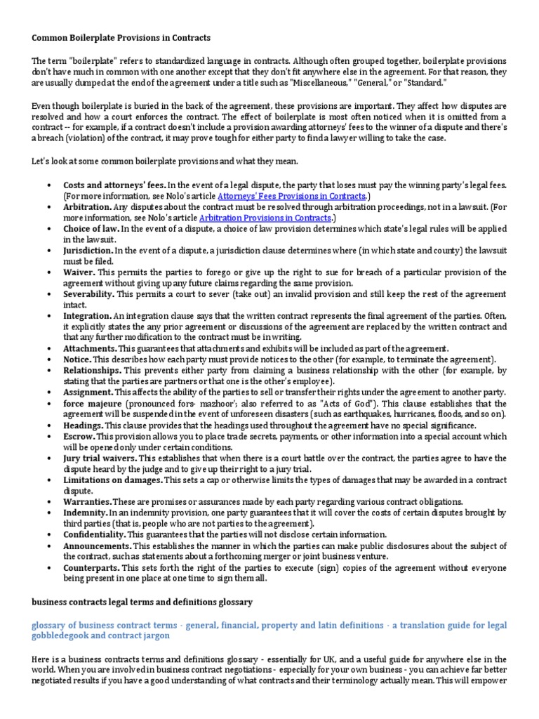 Review Of Boilerplate Contract Provisions Say What You Mean And Mean