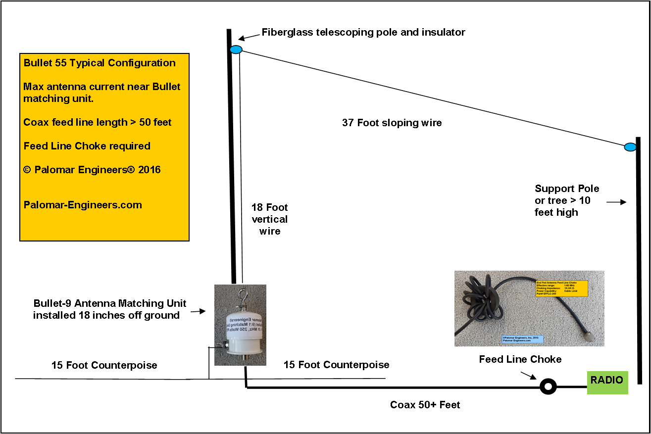 Bullet End Fed Antenna System - 71' Antenna (80-6 meters), 50' Coax and Choke FREE Ship - 500 Watt PEP